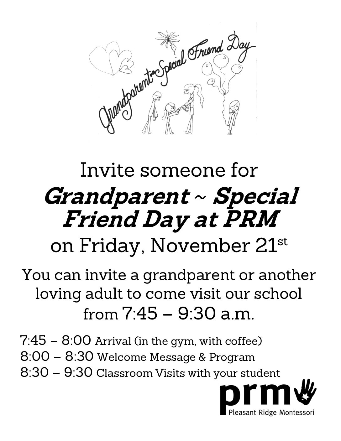 Invite a grandparent or another loving adult to come visit our unique neighborhood Montessori school. 7:45 – 8:00 Arrival (in the…