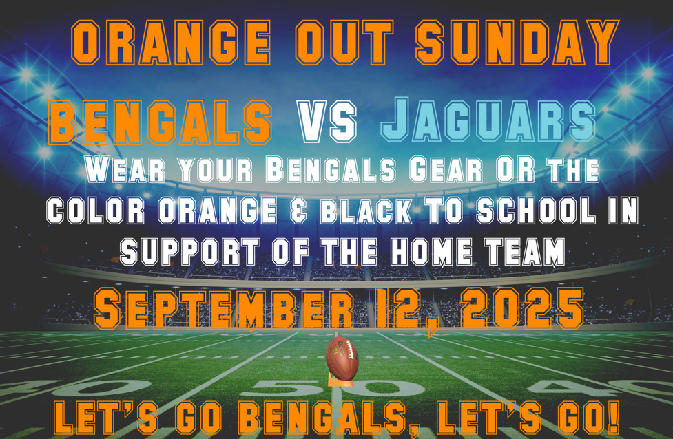 In support of the first home game of the season, when the Bengals are going to “Open in Orange”, all PRM students are invited to be out of uniform IF they too wear orange or their Bengals gear – Who Dey!
